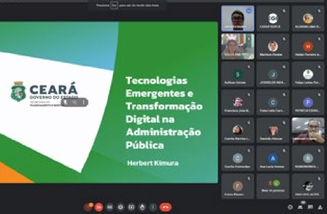 A Escola de Gestão Pública do Estado do Ceará, em parceria com o LabGover, realizou na tarde de 4 de dezembro de 2023, a palestra online “Tecnologias Emergentes e Transformação Digital na Administração Pública”, ministrada pelo professor Dr. Herbert Kimura. O encontro buscou fomentar o potencial das tecnologias emergentes na modernização e otimização da administração pública, abordando desafios, estratégias e melhores práticas para promover uma transformação digital bem-sucedida no setor público.