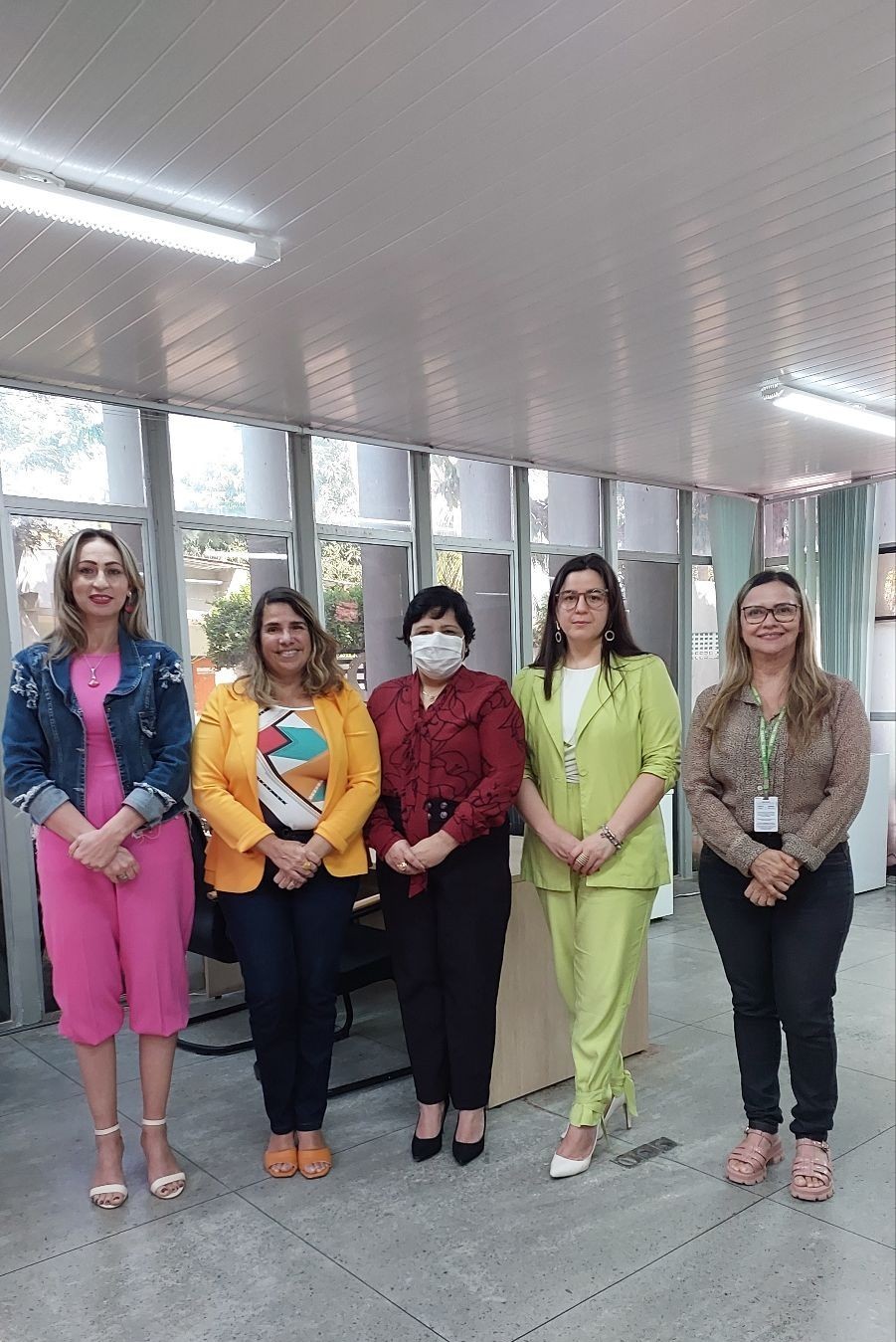 Da esquerda para a direita: Rose Feitosa (CISPE), Dulce Ane Lucena (EGPCE), Cristiane Gadelha Cavalcanti (CISPE), Lara Feitosa (ASJUR) e Dorenice Albuquerque (Célula).