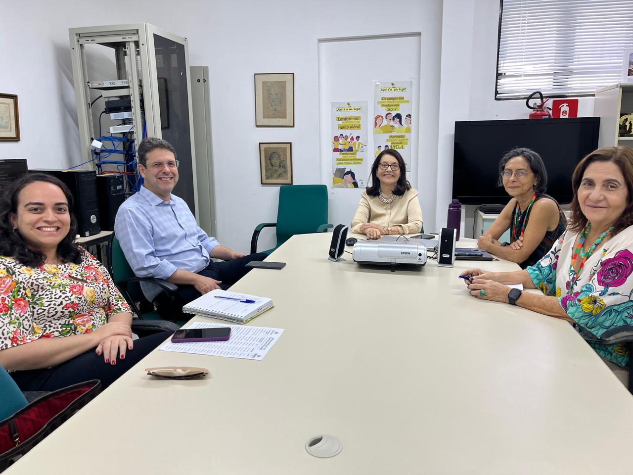 Esq p/ dir. Assessora especial da direção (EGPCE), Flávia Livino, diretor da EGPCE, Carlos Eduardo Marino, coordenadora da Copai, Guirlanda Ponte, orientadora da célula de capacitação (Copai), Jordete Franco, a assessora da Coordenadoria (Copai), Cássia Matos.