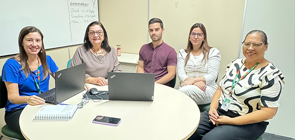 Ouvidores da EGPCE, Gabriel Gregório e Lara Custódio, com integrantes da equipe da área de ouvidoria da CGE.
