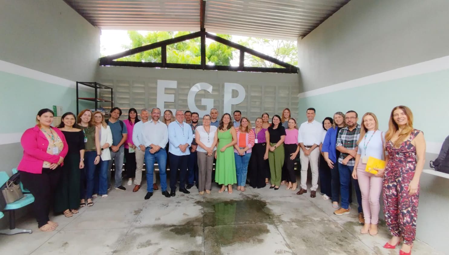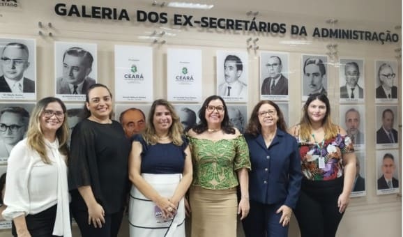 Secretária de Planejamento e Gestão, Sandra Machado, ao lado da Diretora da EGPCE e demais integrantes da equipe EGPCE.