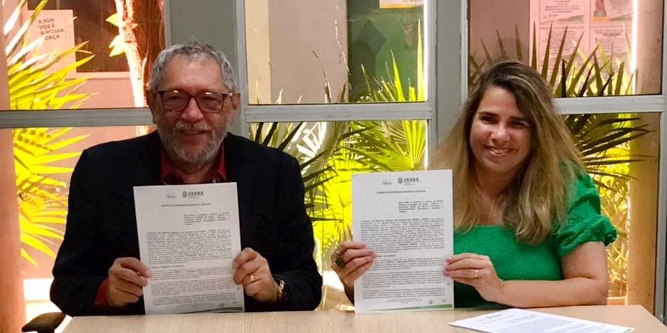 Diretor geral da Fundação Sintaf, Liduíno Lopes de Brito, ao lado da diretora da EGPCE, Dulce Ane Lucena.