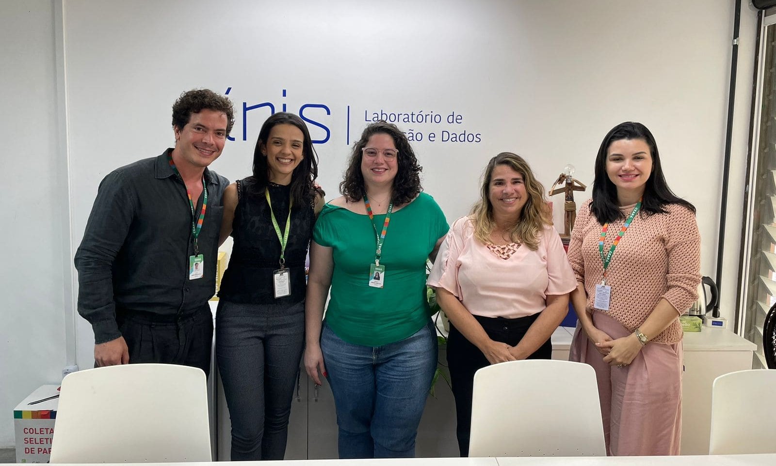 Diretora da EGPCE, Dulce Ane Lucena, ao lado da coordenadora-geral Karine Gurgel e equipe do Laboratório Íris.