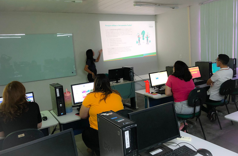 Na manhã de 26 de junho, a assessoria de comunicação, da EGPCE, participou da célula de aprendizagem “Automatizando o Setor da Comunicação da EGPCE por meio da ferramenta digital”, lecionada pela auxiliar técnica da Escola, Amanda Ambrosio, que ressalta: “O setor de comunicação da EGPCE lida com múltiplas tarefas diárias, como posts nas redes sociais, comunicação interna, reuniões, cobertura de eventos, atualização da intranet e o site da EGPCE, entre outras. Utilizar a ferramenta digital pode dinamizar o gerenciamento dessas demandas e ajudar a cumprir prazos de entrega de forma eficiente”, pontua.