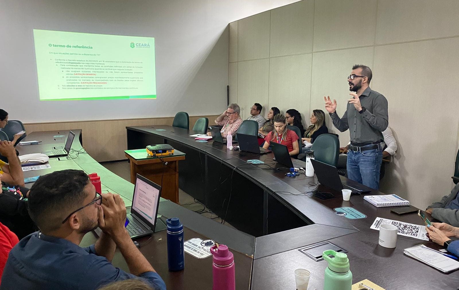 Na manhã de 22 de maio, a Secretaria do Desenvolvimento Econômico, por meio da Escola de Gestão Pública do Estado do Ceará, iniciou a oficina Introdução ao Planejamento com Ênfase na Elaboração do Termo de Referência à Luz da Lei Nº 14.133/2021, destinada a servidores da SDE nas áreas de planejamento, financeira, jurídica, gestão de pessoas e finalística. A proposta foi mostrar os principais aspectos da Lei, a importância do planejamento nas contratações públicas, além das etapas e dos requisitos para a elaboração de um TR completo. As aulas foram lecionadas pelo auditor fiscal de tributos e supervisor do núcleo de compras da Secretaria da Fazenda do Estado do Ceará, Thiago Lacerda Campos.