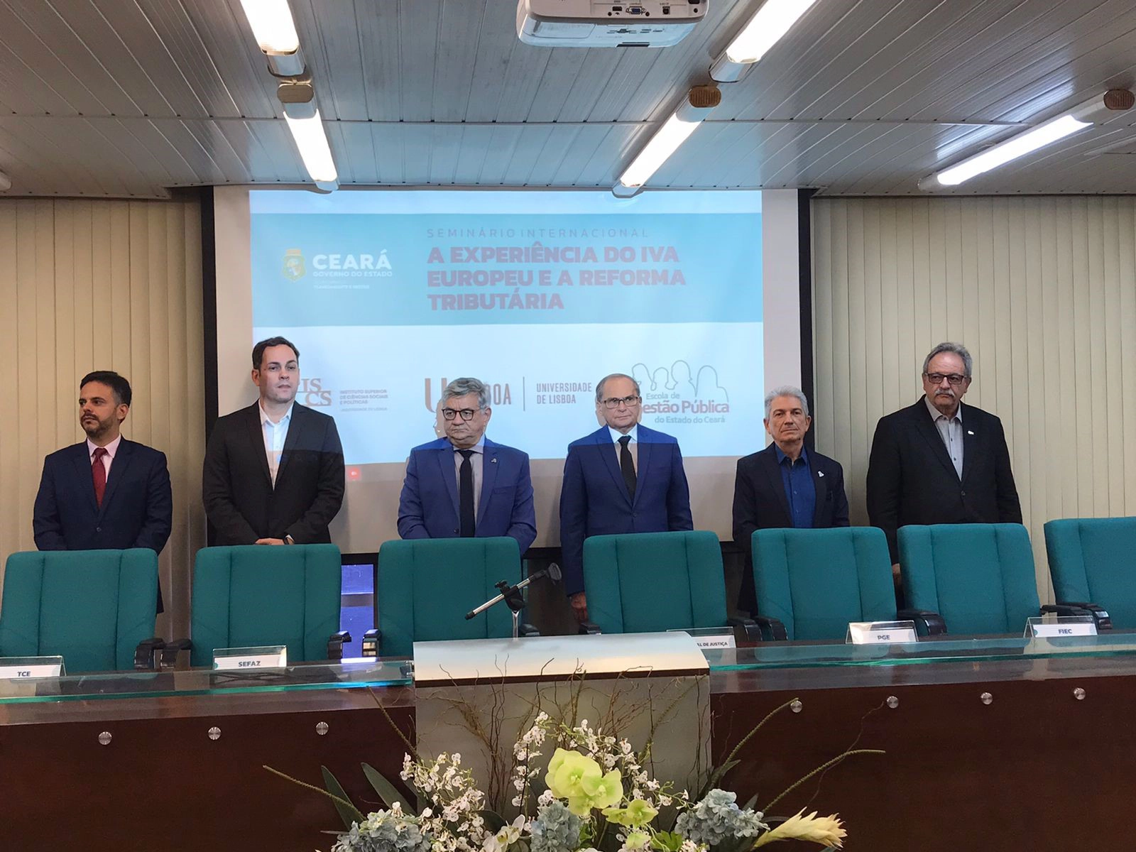 Autoridades presentes no seminário internacional promovido pela EGPCE