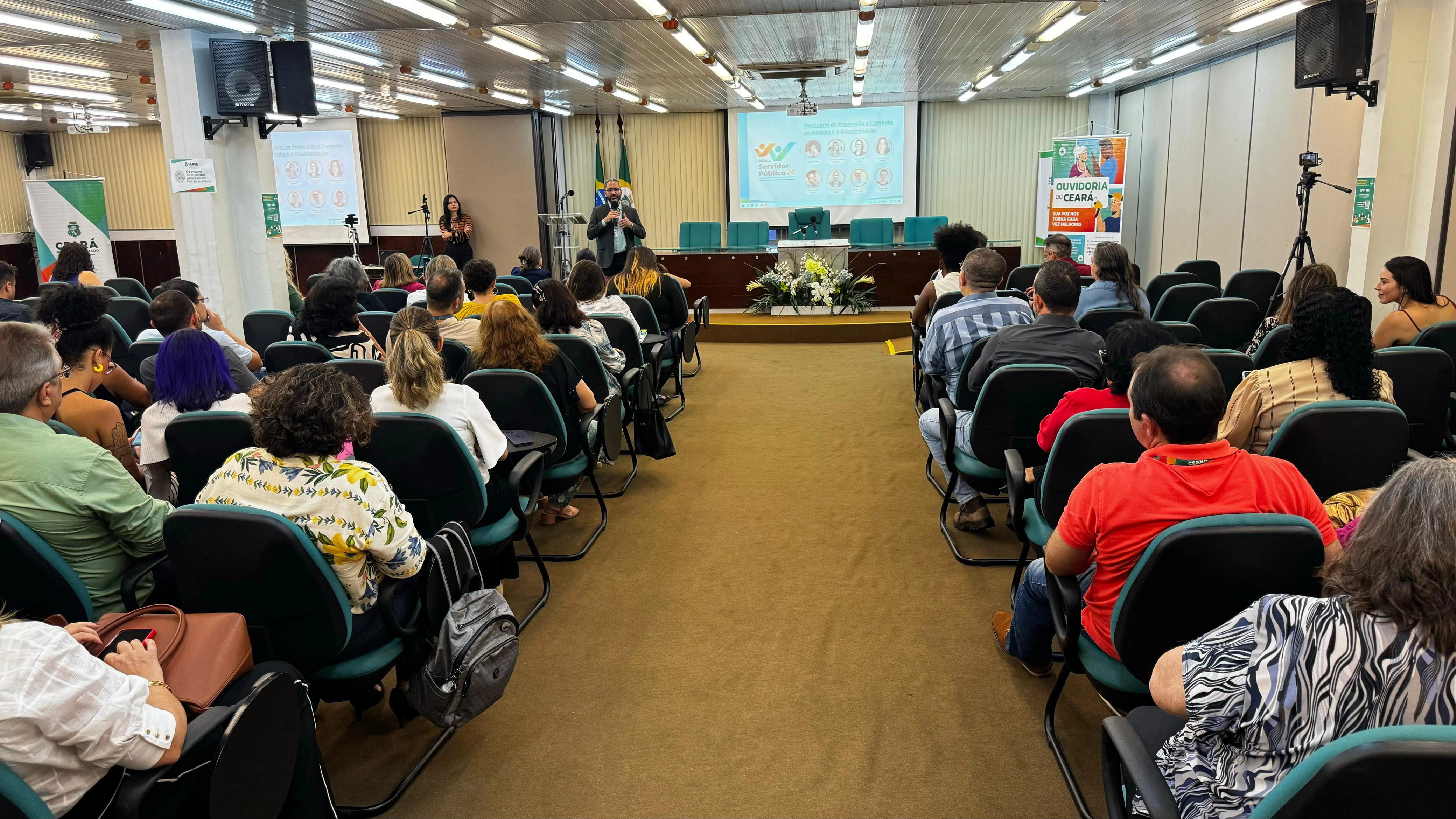 No dia 13 de novembro, os servidores do Estado do Ceará participaram de mais uma ação em celebração ao Mês do Servidor Público: o Seminário de Prevenção e Combate ao Assédio e à Discriminação. Com o tema “Diga Não ao Assédio e à Discriminação: Promovendo a Ética e o Respeito no Trabalho”, o evento reuniu cerca de 105 profissionais de diversos órgãos e entidades para discutir temas essenciais na construção de um ambiente de trabalho mais seguro, ético e inclusivo.