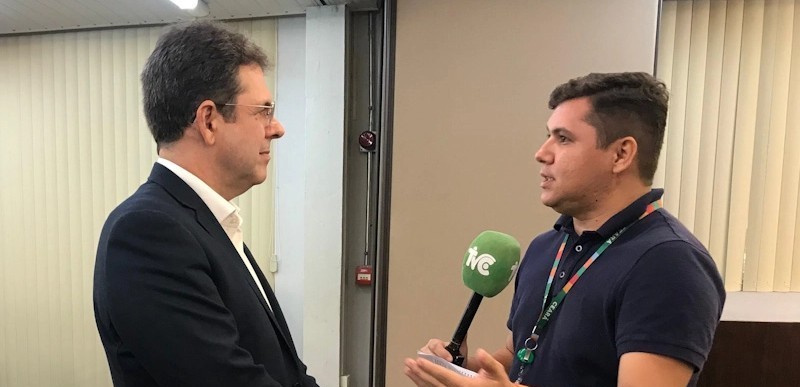 O então diretor da EGPCE, Carlos Eduardo Marino, concede entrevista para programa de rádio do O Povo CBN.