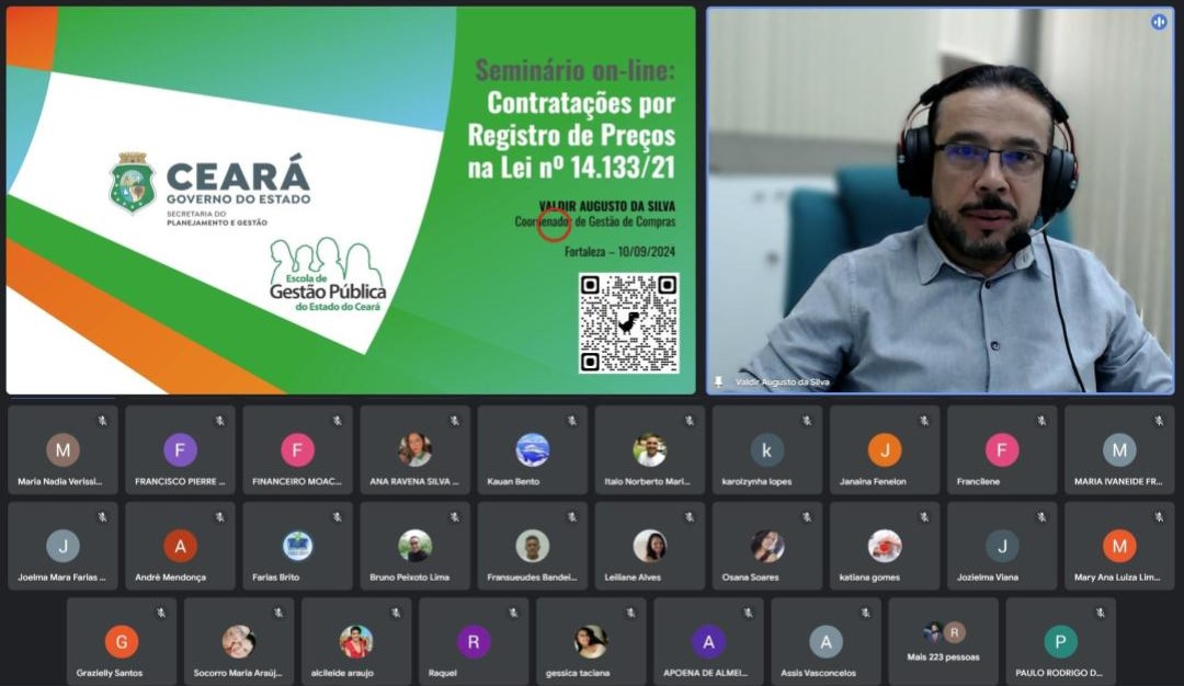Em 10 de setembro, a Escola de Gestão Pública do Estado do Ceará realizou o seminário Contratações por Registro de Preços na Lei nº 14.133/2021, para 271 servidores públicos estaduais e municipais.