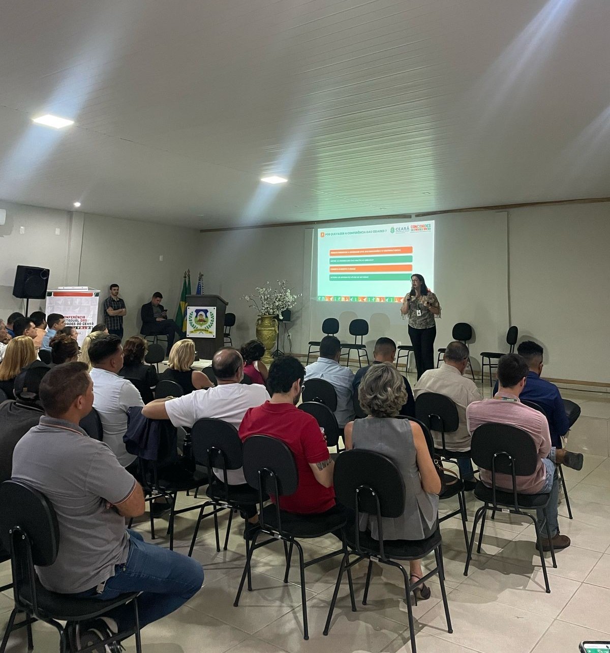 A Secretaria das Cidades, em parceria com a Escola de Gestão Pública do Estado do Ceará, realizou, na tarde de 24 de abril, o Seminário Preparatório para a 6ª Conferência das Cidades, em Quixeramobim.