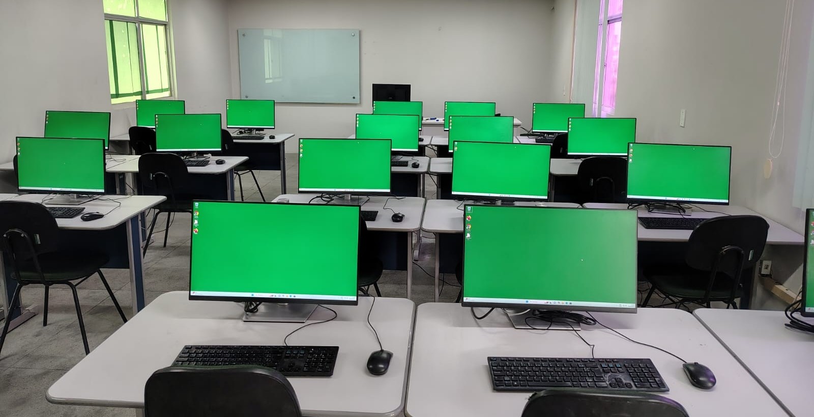 O Laboratório de Informática A. A equipe de Tecnologia da Informação da EGPCE foi responsável pela instalação e montagem dos equipamentos.