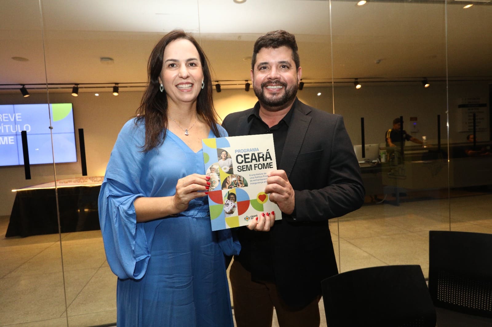 Primeira-dama Lia de Freitas e diretor Saulo Braga com o livro “Ceará Sem Fome: a arquitetura de uma política pública de enfrentamento à insegurança alimentar”