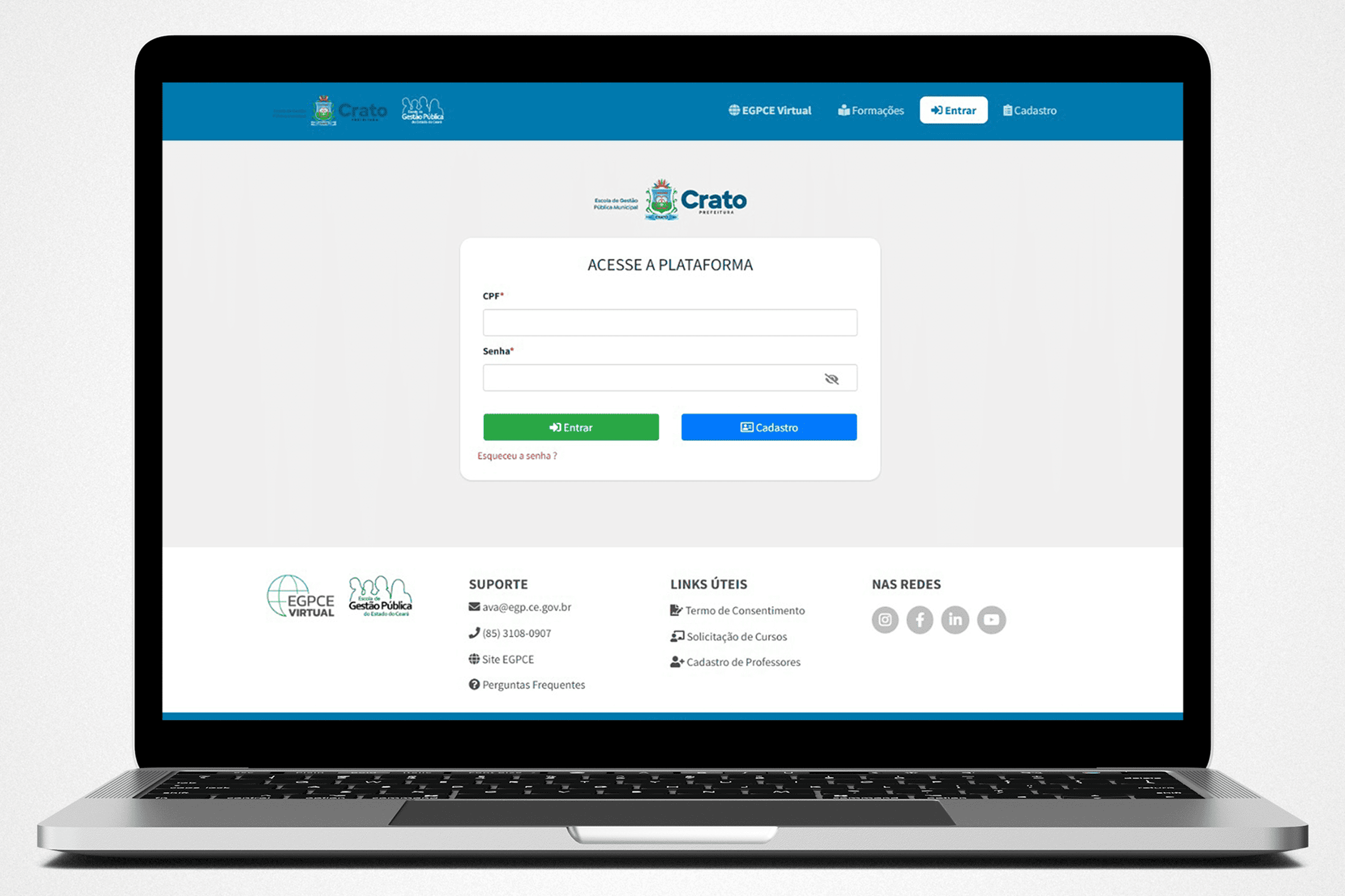 Print do sistema personalizado do EGPCE Virtual criado para o município do Crato