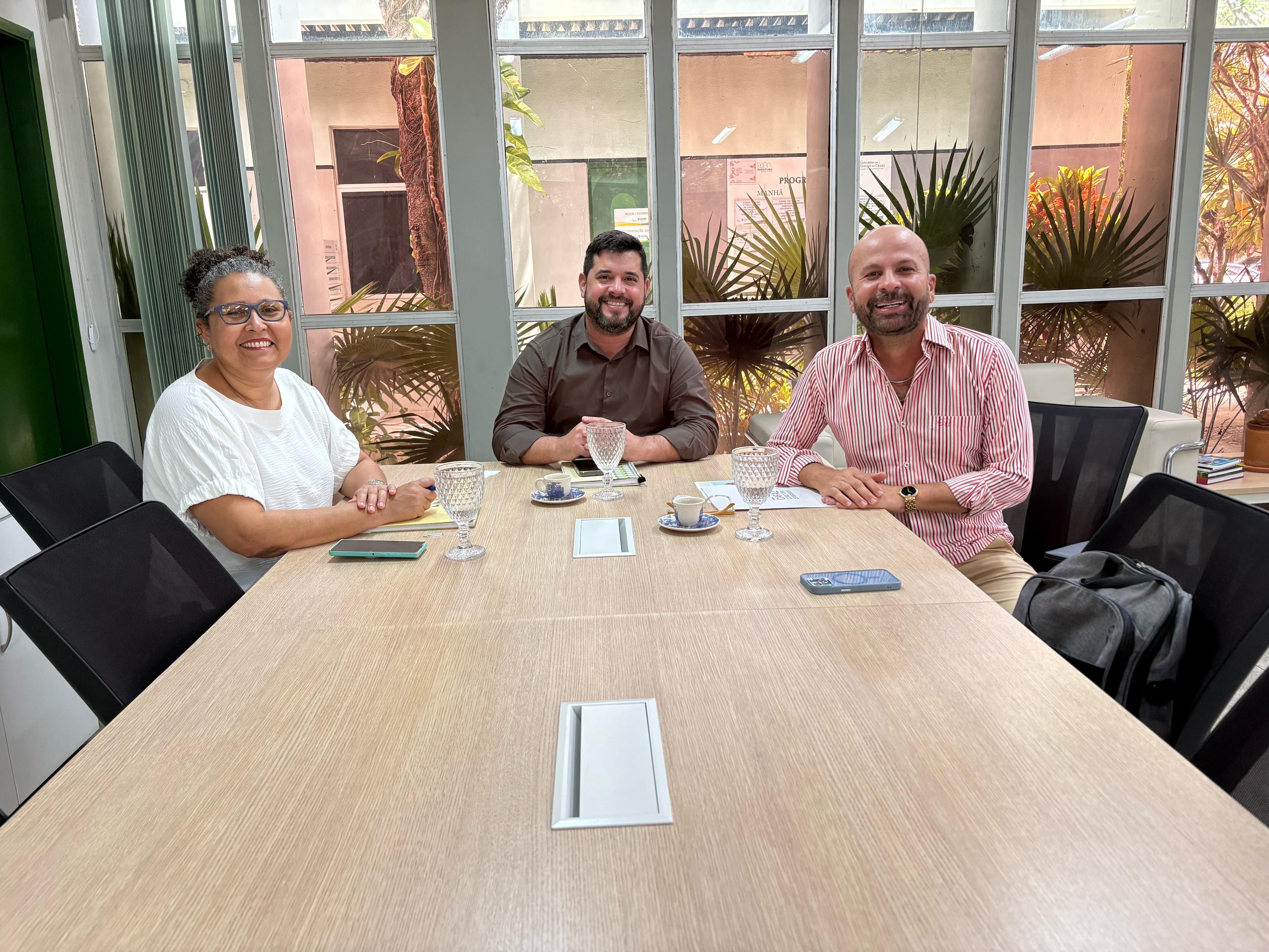Participaram da reunião o diretor da EGPCE, Saulo Braga, a coordenadora da Coped, Josinelde Coelho, e o relações públicas da Cafaz Corretora, César Wagner.