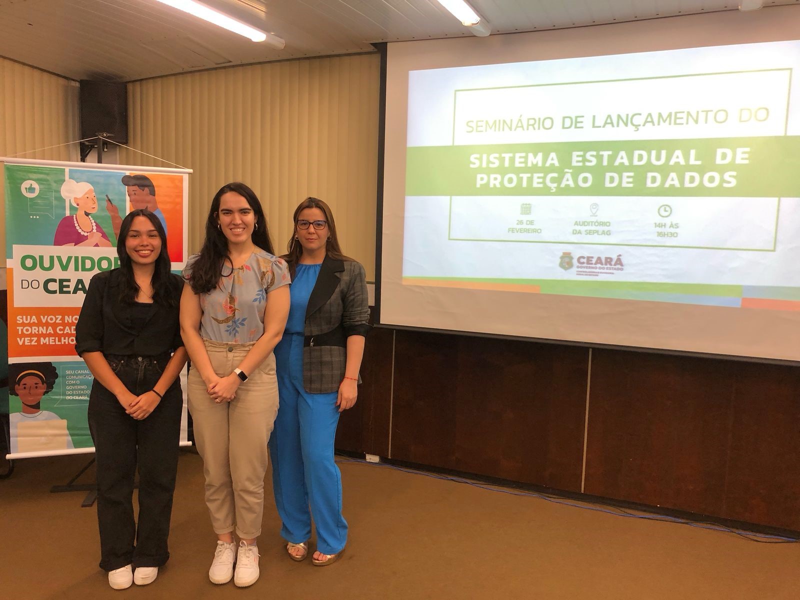 Estiveram presentes no evento integrantes da Comissão de Proteção de Dados da EGPCE: Amanda Ambrósio, Lara Feitosa e Vanessa Nobre.