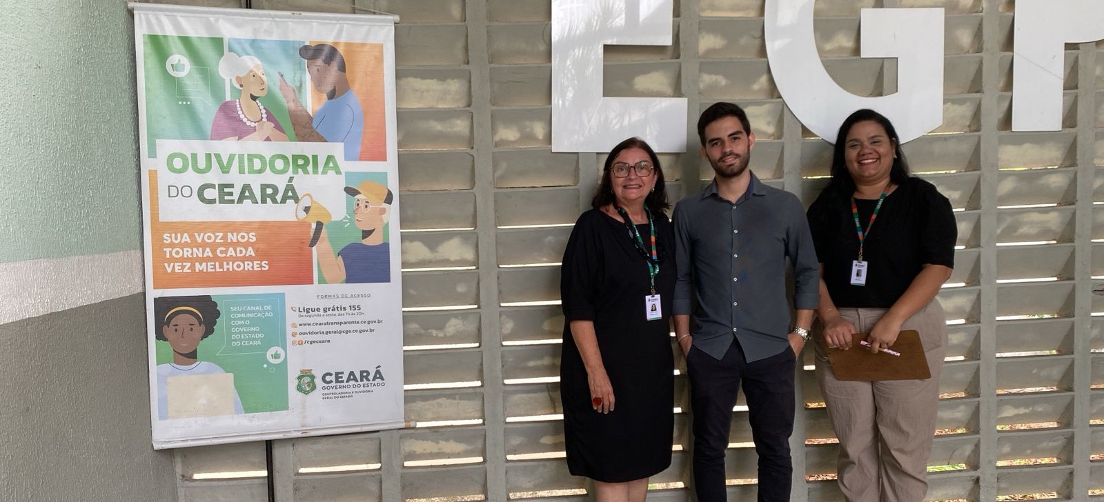 Participaram da visita o ouvidor substituto da EGPCE, Gabriel Gregório, a orientadora de célula da Gestão de Ouvidoria (CEOUV/ CGE), Thais Holanda, e a assistente técnica da Coordenadoria de Ouvidoria (COUVI/CGE), Alaíde Sales.