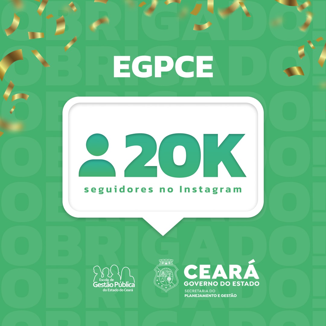Em 17 de janeiro, a EGPCE conquistou 20 mil seguidores no seu perfil do Instagram. O resultado é fruto do trabalho de divulgação que vem sendo feito para sociedade civil e para servidores e colaboradores dos municípios cearenses. A expectativa é que a plataforma alcance números mais expressivos à medida que as formações da EGPCE se tornem mais conhecidas e almejadas.