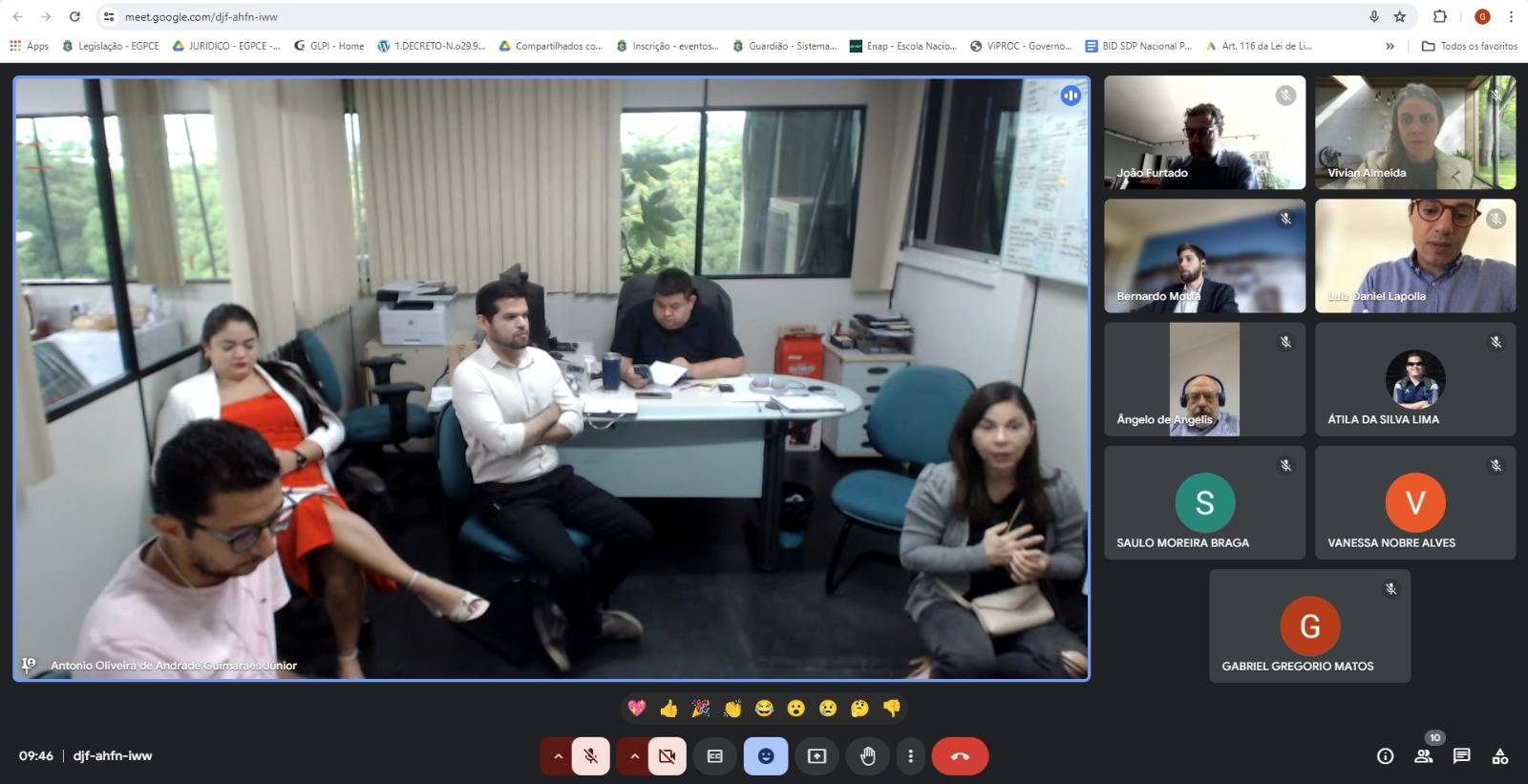 Estiveram presentes na reunião o diretor da EGPCE, Saulo Braga, o orientador de célula COEGE/EGPCE, Gabriel Gregório, a coordenadora CODIP/EGPCE, Vanessa Nobre, o analista de sistema CODIP/EGPCE, Átila da Silva Lima, o coordenador da Codig/ Seplag, Márcio Morais, o coordenador da Coget/Seplag, Diego Ribeiro, a articuladora Coget/Seplag, Alda Oliveira, os gerentes de Projetos/Seplag, Angélica Pires e Sandro Valente, o líder de soluções de governo digital/Seplag, Antônio Júnior, e os sócios/ Finance, Vivian Almeida, João Furtado, Bernardo Motta, Luiz Daniel Lapolla e Ângelo de Angelis.