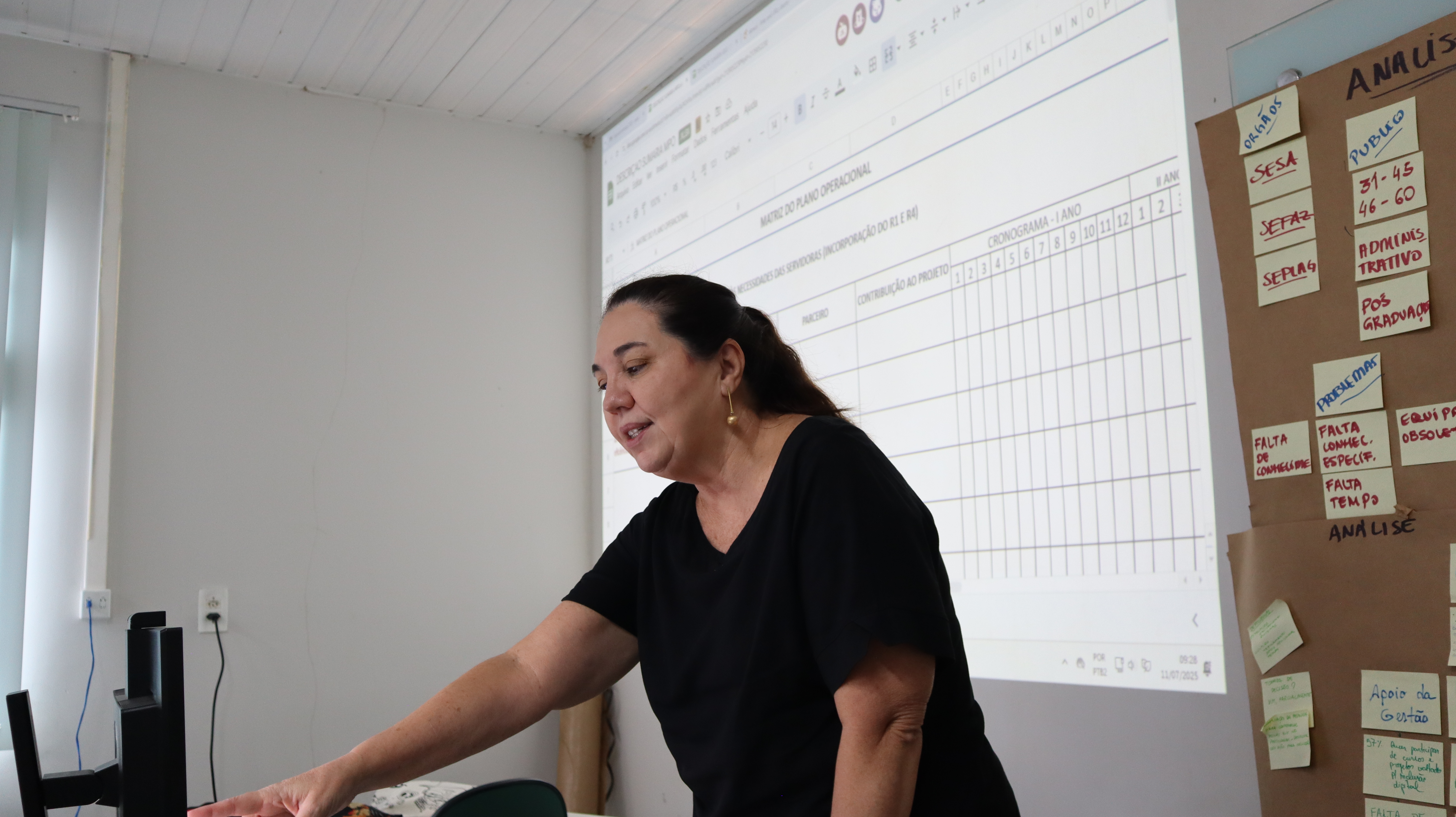 A coordenadora da Coege, Maria Aparecida Façanha, ministra a oficina sobre inclusão digital de servidoras públicas