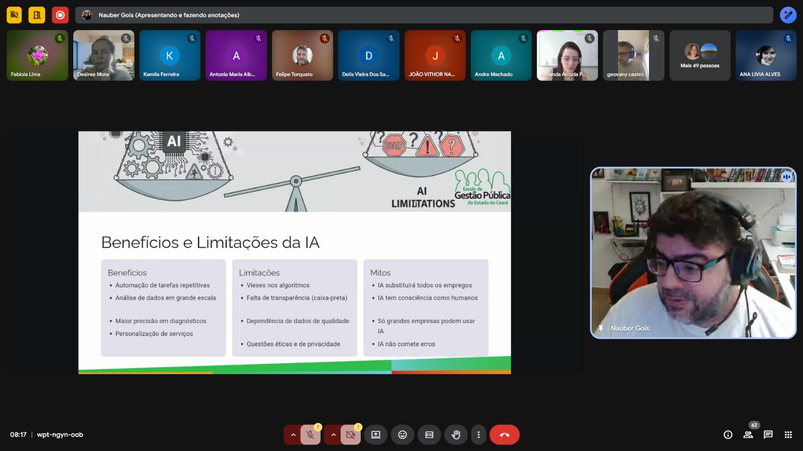 Com carga horária de 20h/a, o curso foi ministrado pelo auditor de Tecnologia da Informação e Inteligência Artificial na CGE, Francisco Nauber Bernardo Gois.