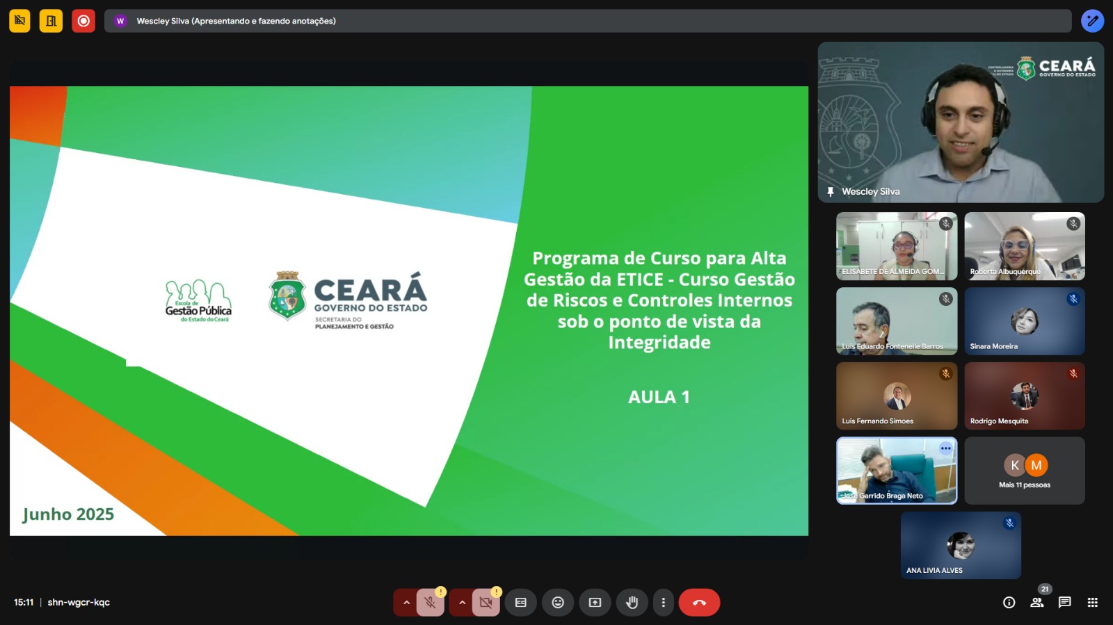 Print de aula online ministrada pelo servidor da CGE, Wescley Silva.