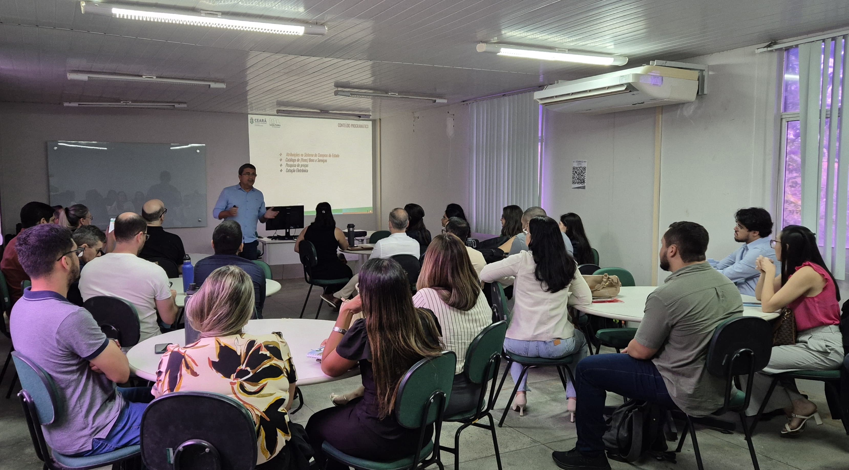 O conteúdo programático abordou a legislação pertinente ao catálogo de bens e serviços, na pesquisa e elaboração do mapa de preços, além da cotação eletrônica no Portal de Compras do Estado.