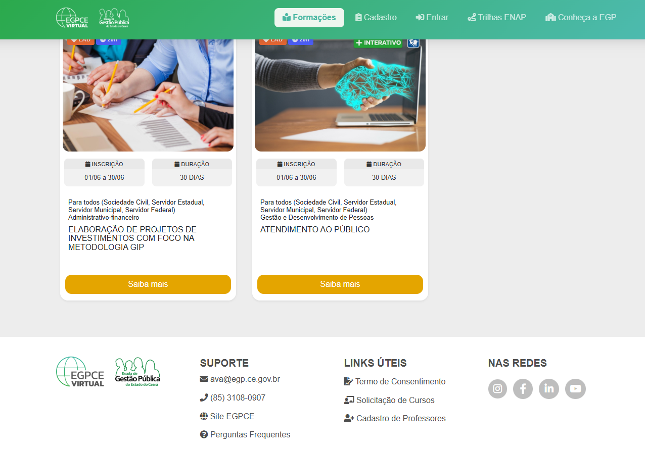 Novo rodapé com links úteis implementado no EGPCE Virtual.