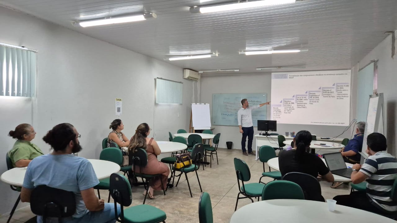 Nos dias 29 e 30 de setembro, a Escola de Gestão Pública do Estado do Ceará (EGPCE) sediou a oficina Mudança do Clima para Gestão Pública, uma iniciativa da Escola Nacional de Administração Pública - Enap em parceria com a Escola, que foi ministrada pelo chefe da Divisão de Integração Multinível no Ministério do Meio Ambiente - MMA, Pedro Alexandre Christ. A formação reuniu servidores e colaboradores do Estado e dos municípios cearenses e abordou estratégias e soluções para a mudança do clima para a gestão pública.