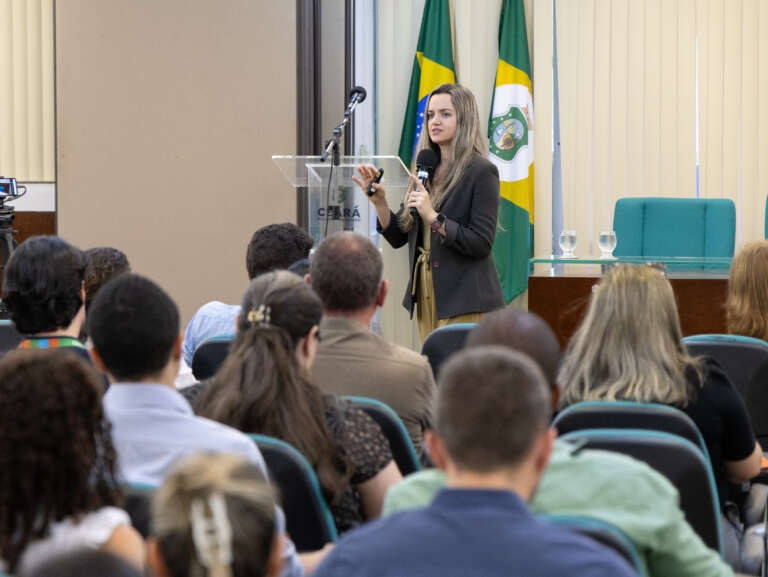 Lidiana Basílio ministrando sobre captação de recursos não oneroso.